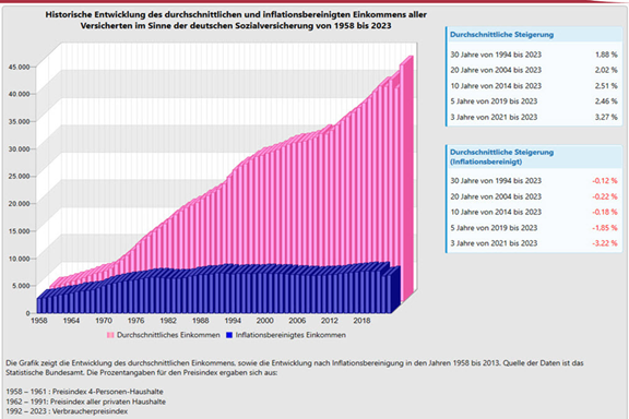Trotz moderater Anstiege des Reallohns pro Arbeitsstunde von 19,12 € (1994) auf 24,79 € (2024) ergibt sich netto kein spürbarer Zugewinn an Kaufkraft. Warum?